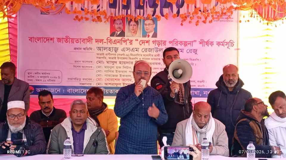 বুধবার (৭ জানুয়ারি) দুপুর ১২টায় উপজেলার রেজিস্ট্রি অফিস সংলগ্ন দলীয় কার্যালয়ে আয়োজিত কর্মসূচিতে প্রধান অতিথি হিসেবে বক্তব্য দেন নওগাঁ-৬ (আত্রাই–রাণীনগর) আসনে বিএনপির মনোনীত প্রার্থী শেখ মো. রেজাউল ইসলাম রেজু। তিনি বলেন, বিএনপি চেয়ারপারসন বেগম খালেদা জিয়ার আদর্শ বাস্তবায়নে ঐক্যবদ্ধভাবে কাজ করতে হবে। তারেক রহমান ঘোষিত রাষ্ট্র কাঠামো মেরামতের ৩১ দফা বাস্তবায়নের মাধ্যমেই দেশের কল্যাণ ও মুক্তি নিশ্চিত হবে।