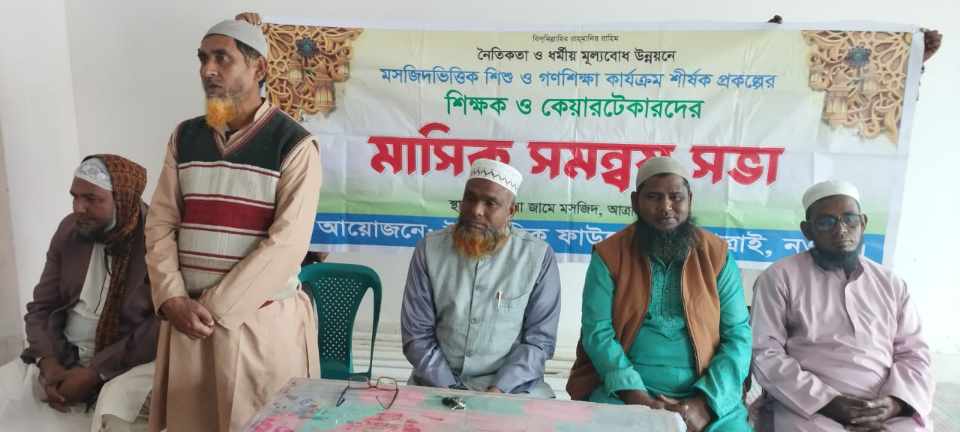 তাহার বক্তব্যে বলেন,প্রাথমিক পর্যায় থেকেই শিশুদের মধ্যে নৈতিকতা ও ধর্মীয় মূল্যবোধের বিকাশ ঘটানো অত্যন্ত গুরুত্বপূর্ণ। তিনি বলেন, মসজিদ ভিত্তিক এই শিক্ষা কার্যক্রম শিশুদের সুন্দর ভবিষ্যৎ গঠনে এবং তাদেরকে সু-নাগরিক হিসেবে গড়ে তুলতে গুরুত্বপূর্ণ ভূমিকা রাখছে।তিনি এই কার্যক্রমের সাথে জড়িত সকল শিক্ষক,শিক্ষিকা ও কেয়ারটেকারদের আন্তরিকতার সাথে তাদের দায়িত্ব পালনের জন্য আহ্বান জানান।অনুষ্ঠানে অন্যান্যের মধ্যে বক্তব্য রাখেন, সাধারণ কেয়ারটেকার মাওলানা মোহাম্মদ আব্দুর রাজ্জাক, কেয়ারটেকার,মাওলানা আব্দুল জলিল,মোঃরফিকুল ইসলাম, আব্দুল হাই আল হাদি প্রমখ। অনুষ্ঠানটি দোয়ার মাধ্যমে সমাপ্ত করা হয়।