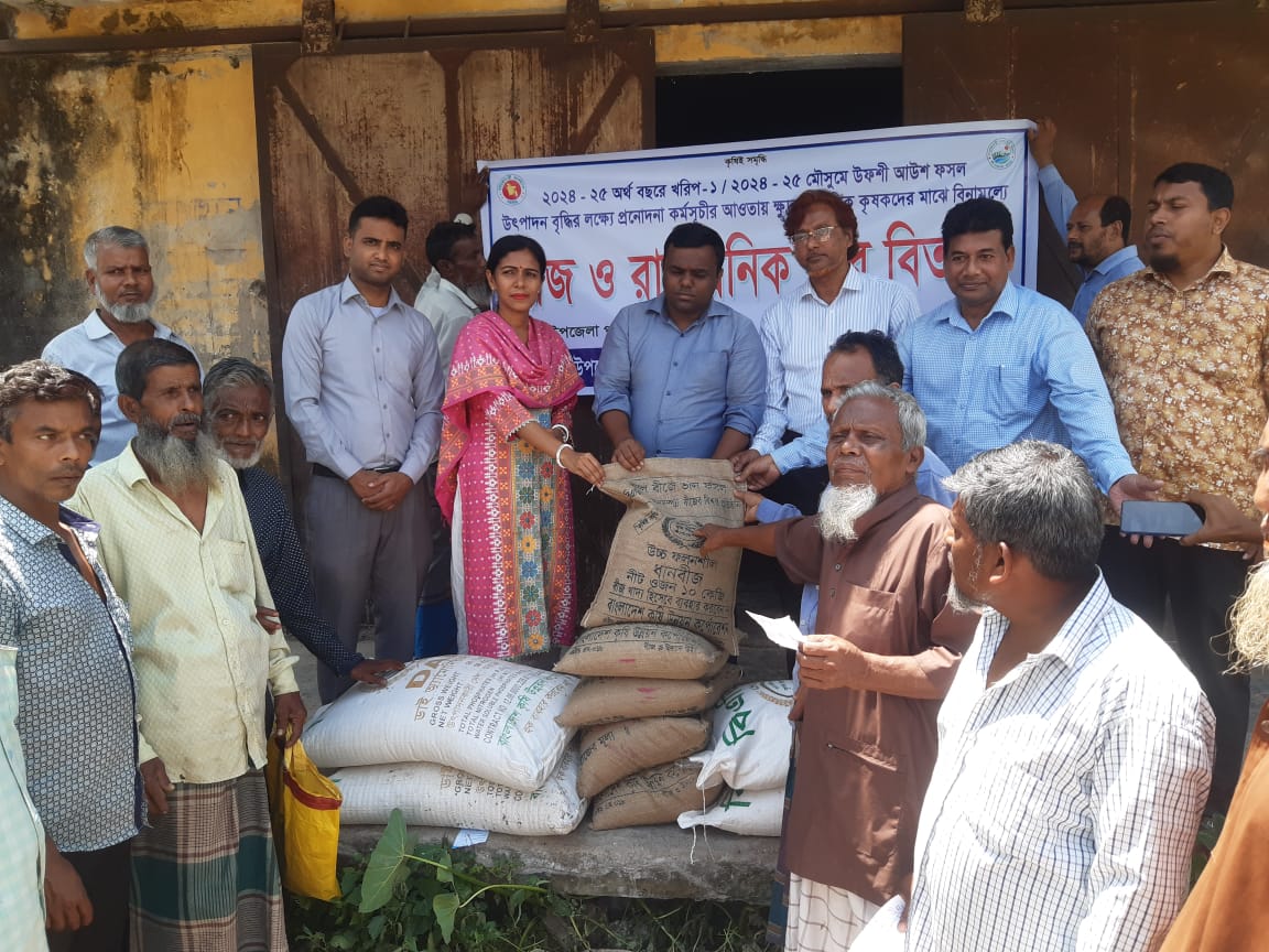 পিরোজপুরের কাউখালী উপজেলাধীন ৫টি ইউনিয়নের ২ হাজার ২শত কৃষকদের মাঝে বিনামুল্যে বাংলাদেশ সরকারের কৃষি উন্নয়ন অধিদপ্তরের উদ্যোগে প্রণোদনা হিসেবে উপসী আউশ ধানের বীজ ও সার প্রদান করা হয়। অদ্য ১০এপ্রিল ২০২৫ বৃহস্পতিবার,সকাল ১১ঘটিকার সময় উপজেলা প্রশাসন ও কৃষি উন্নয়ন অধিদপ্তর এর উদ্যোগে, উপজেলা চত্বরে সার ও বীজ বিতরণী উদ্বোধন করা হয়। এ সময় কাউখালী উপজেলা কৃষি কর্মকর্তা সোমা রানী দাস এর সভাপতিত্বে প্রধান অতিথি হিসেবে উপস্থিত ছিলেন উপজেলা নির্বাহী কর্মকর্তা স্বজল মোল্লা, এছাড়াও উপজেলা সকল কৃষি কর্মকর্তা ও কর্মচারীবৃন্দ। বাংলাদেশ সরকারের কৃষি উন্নয়ন অধিদপ্তরের আওতায় ২০২৪-২৫ অর্থবছরে খরীপ-১/২০২৪-২৫ মৌসুমে উপসি আউশ ফসল উৎপাদন বৃদ্ধির লক্ষ্যে প্রণোদনা কর্মসূচির আওতায় ক্ষুদ্র ও প্রান্তিক কৃষকদের মাঝে বিনামূল্যে কৃষি পণ্য রাসায়নিক সার ও বীজ বিতরন করা হয়। উপজেলার ৫টি ইউনিয়নের ২২ শত কৃষকদের মাঝে উপসি আউস ধান ৫ কেজি, ডেপ সার ১০কেজী, এমওপি ১০ কেজি জন প্রতি করে বিতরণ করা হয়। অতঃপর সার ও বীজ বিতরণীর আনুষ্ঠানিকতা শেষে উপজেলা নির্বাহী কর্মকর্তা স্বজল মোল্লা ও কৃষি কর্মকর্তা সোমা দাস উপস্হিত কৃষকদের উদ্দেশ্যে বলেন, বাংলাদেশ সরকার ও কৃষি উন্নয়ন অধিদপ্তর চলমান মৌসুমে উপসী আউশ ফসল উৎপাদন বৃদ্ধির লক্ষ্যে কৃষকদের মাঝে কৃষি পণ্য বিনামূল্যে বিতরণ করছে,বিগত বছরের চেয়ে বর্তমানে কৃষকদের উৎপাদিত ফসল ও আগ্রহ বৃদ্ধি পাওয়ায় সরকার কৃষি কর্মকর্তাদের মাধ্যমে মাঠ পর্যায়ে পরামর্শ সহ সার্বিক সহযোগিতা করে আসছে। ভবিষ্যতেও সার্বিক সহযোগিতা করবেন বলে আশ্বাস প্রদান করেন। বক্তব্যে আরও বলেন বিনামূল্যে প্রদানকৃত কৃষি পণ্য চাষ না করে,অপব্যবহার বা বিক্রয় করলে তার বিরুদ্ধে আইনগত ব্যবস্থা গ্রহণ করা হবে বলে ব্যক্ত করেন।
