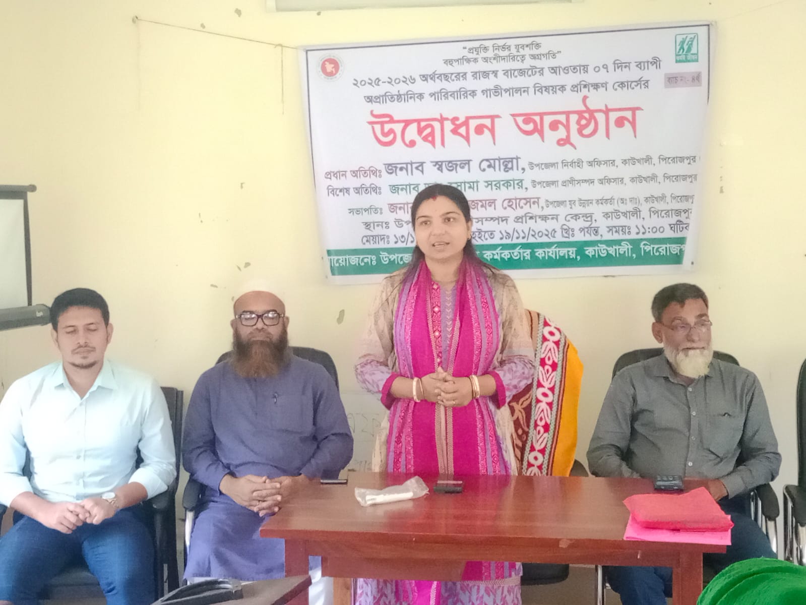 পিরোজপুর জেলাধীন কাউখালী উপজেলা যুব উন্নয়ন অধিদপ্তরের আয়োজনে,৭দিন ব্যাপি “অপ্রাতিষ্ঠানিক পারিবারিক গাভী পালন” (৪র্থ ব্যাচ) বিষয়ক প্রশিক্ষণ কোর্সের শুভ উদ্বোধন করা হয়।