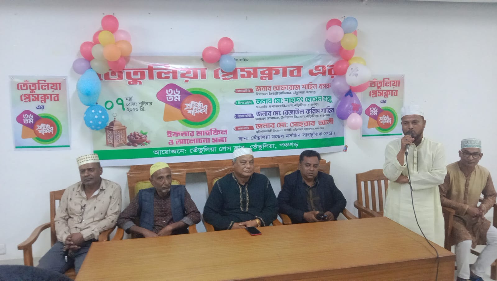 শনিবার (৭ মার্চ) সন্ধ্যায় উপজেলা মডেল মসজিদ সাংস্কৃতিক কেন্দ্রে তেঁতুলিয়া প্রেসক্লাবের আয়োজনে ইফতার ও প্রতিষ্ঠা বার্ষিকী পালন করা হয়। ইফতার মাহফিলে মুসলিম উম্মাহর শান্তি, সমৃদ্ধি এবং দেশ ও জাতির কল্যাণে দোয়া ও বিশেষ মোনাজাতকরা হয়। একই সঙ্গে প্রেস ক্লাবের প্রতিষ্ঠার ৩৬তম বর্ষ বার্ষিকী উদযাপনে আলোচনা সভা অনুষ্ঠিত হয়।