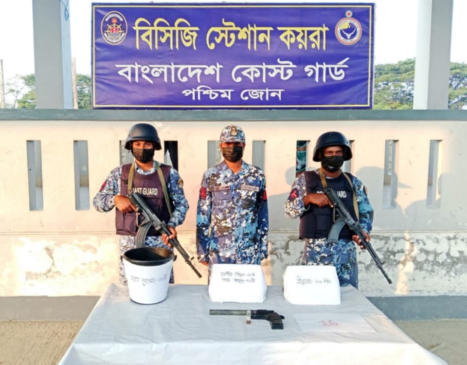 কোস্টগার্ড পশ্চিম জোনের একটি আভিযানিক দল গোপন সংবাদের ভিত্তিতে সুন্দরবনের বুড়িগোয়ালিনী এলাকায় অভিযান পরিচালনা করে ১টি দেশীয় পিস্তল, ১ রাউন্ড তাজা কার্তুজ, ২টি হাতবোমা এবং ১৬ পিস ইয়াবা জব্দ করেছে। তবে এঘটনায় কেউ আটক হয়নি।
