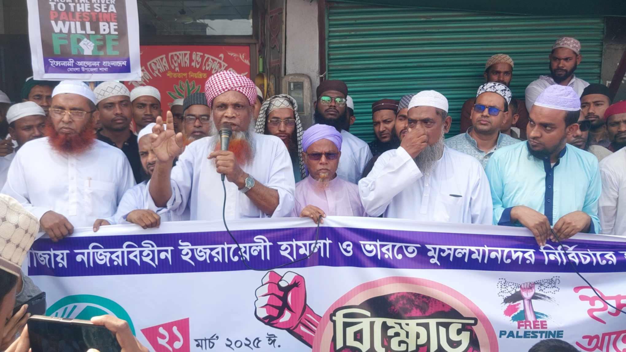 শুক্রবার (২১ মার্চ) বাদ জুময়া ইসলামী আন্দোলন বাংলাদেশের আয়োজনে গাজায় নজিরবিহীন ইজরায়েলী হামলা ও ভারতে মুসলমানদের নির্বিচারে হত্যার প্রতিবাদে বিক্ষোভ সমাবেশে বক্তারা এসব কথা বলেন। প্রতিবাদ সমাবেশে বক্তারা আরো বলেন, ফিলিস্তিনের গাজা উপত্যকার আবাসিক এলাকাগুলোতে ইসরায়েলের একের পর এক বর্বরোচিত বোমা হামলায় রক্তে রঞ্জিত হচ্ছে মুসলিমদের পবিত্র ভুমি। অপরদিকে শিশুদের কাঁন্না আর লাশের মিছিলে যখন আকাশ বাতাস ভারি হয়ে গেছে, মা বোনদের রুহু আহাজারিতে পৃথিবী কেঁপে উঠছে। কিন্তু আজকের বিশ্বের মোড়লরা নিশ্চুপ ভূমিকা পালন করছে।