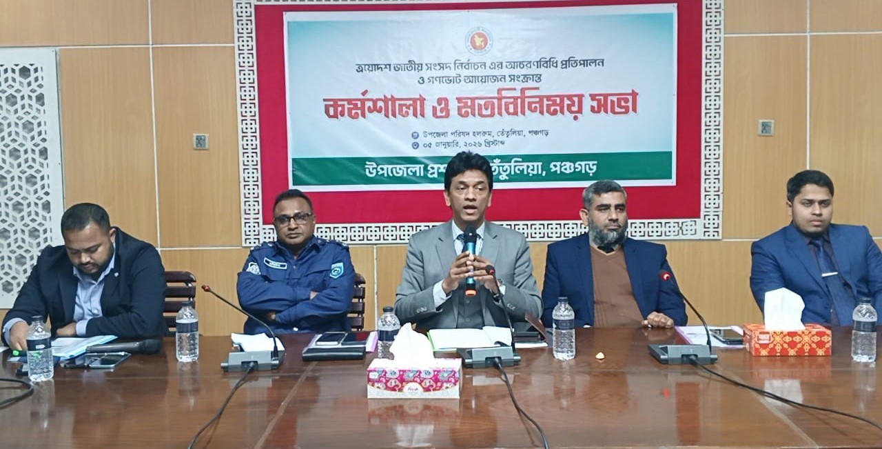 পঞ্চগড়ের তেঁতুলিয়ায় ত্রয়োদশ জাতীয় সংসদ নির্বাচনে আচরণবিধি প্রতিপালন ও গণভোট আয়োজন সংক্রান্ত কর্মশালা ও আলোচনা সভা অনুষ্ঠিত হয়েছে।