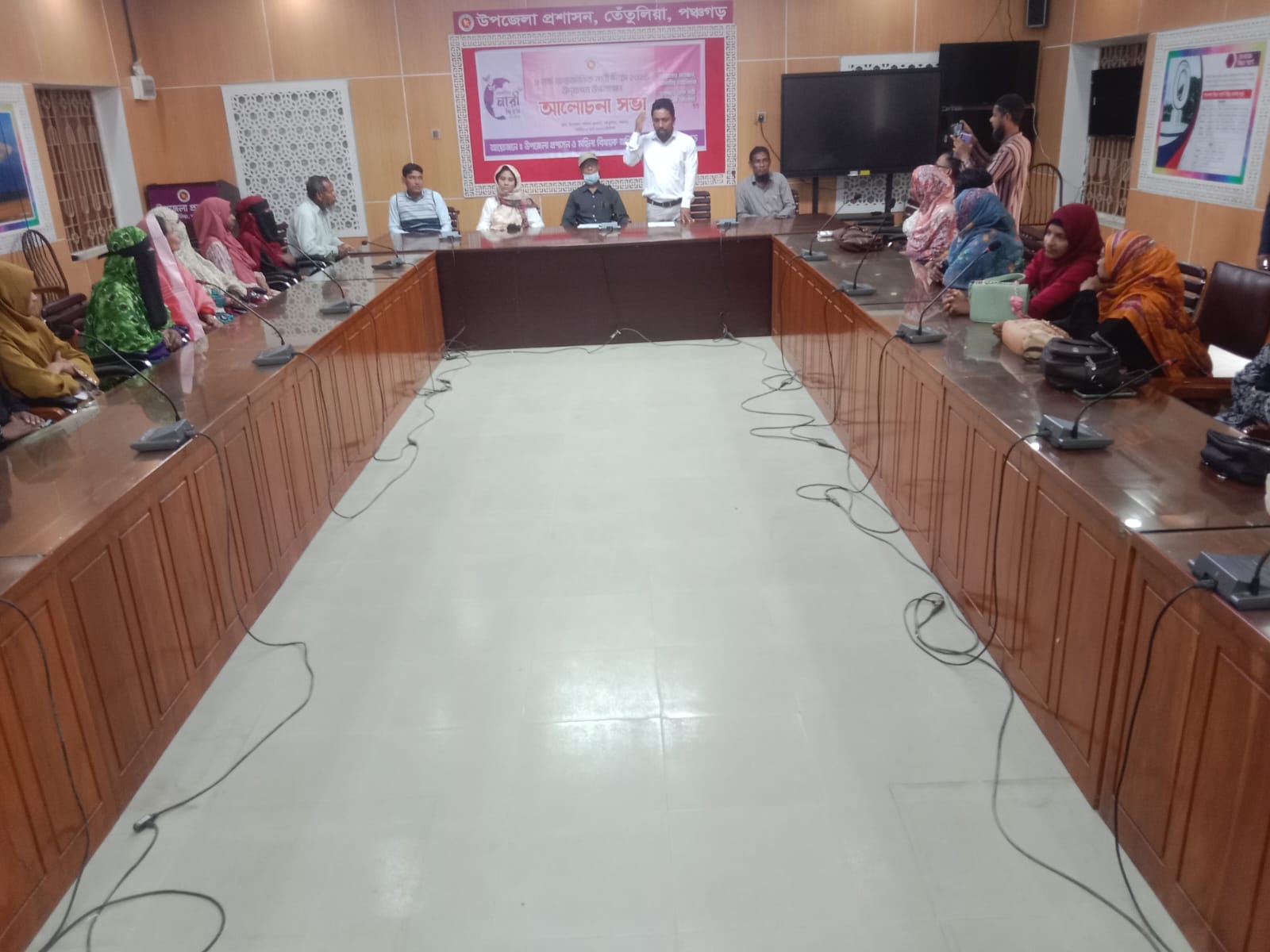 পঞ্চগড়ে তেতুলিয়ায় উদ্বোধন অনুষ্ঠান, বর্ণাঢ্য শোভাযাত্রা, আলোচনা সভাসহ বিভিন্ন কর্মসূচির মধ্য দিয়ে রোববার (০৮ মার্চ) আন্তর্জাতিক নারী দিবস পালন করা হয়। বেসরকারি উন্নয়ন সহযোগী সংস্থার সহযোগিতায় উপজেলা প্রশাসন, মহিলা বিষয়ক অধিদপ্তর ও জাতীয় মহিলা সংস্থা যৌথভাবে এ অনুষ্ঠানের আয়োজন করে।‘আজকের পদক্ষেপ, আগামীর ন্যায়বিচার সুরক্ষিত হোক নারী ও কন্যার অধিকার’ এই প্রতিপাদ্য নিয়ে দিবসটি উপলক্ষ্যে সকালে উপজেলা পরিষদ সম্মেলনকক্ষে আলোচনা সভা অনুষ্ঠিত হয়। তেতুলিয়া উপজেলা মাধ্যমিক শিক্ষা অফিসার শওকত আলীর সভাপতিত্বে উপস্থিত ছিলেন প্রোগ্রাম অফিসার (ও সি সি)উত্তম কুমার মন্ডল, যুব উন্নয়ন অফিসার আবু জাফর হাওলাদার, জনস্বাস্থ্য সহকারী প্রকৌশলী মিঠুন কুমার রায়,উপজেলা মহিলা বিষয়ক অধিদপ্তরের প্রশিক্ষক শাহজাহান আলী।