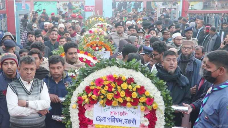 এ সময় পুলিশ প্রশাসন, মুক্তিযোদ্ধা সংসদ, শিক্ষার্থী, সরকারি-বেসরকারি প্রতিষ্ঠান, সামাজিক-সাংস্কৃতিক সংগঠন ও রাজনৈতিক দলের পক্ষ থেকেও শ্রদ্ধা নিবেদন করা হয়। দিনভর শ্রদ্ধা নিবেদনে স্মৃতিস্তম্ভ ফুলে ফুলে ভরে ওঠে। এছাড়া নওগাঁ জেলা স্টেডিয়ামে কুচকাওয়াজ ও ডিসপ্লে প্রদর্শন, এটিম মাঠে বিজয় মেলা এবং সদর উপজেলা পরিষদ অডিটোরিয়ামে বীর মুক্তিযোদ্ধা ও শহীদ পরিবারের সদস্যদের সংবর্ধনার আয়োজন করা হয়েছে।
