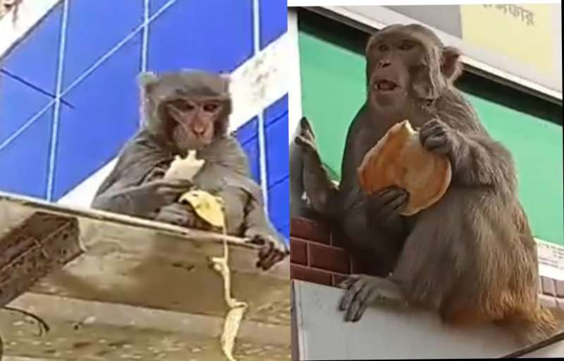 লোকালয়ে এভাবে বানর দুটিকে দেখতে জনসাধারণের ভীড় জমিয়েছে।