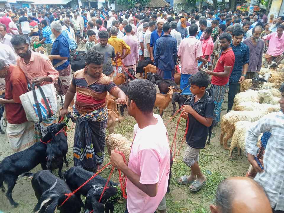 নওগাঁর মান্দায় পবিত্র ঈদুল আযহা উপলক্ষে ফতেপুর হাটে কুরবানির পশুর হাটে জমে উঠেছে কেনা-বেচা।দুপুর ২টা থেকেই ক্রেতা ও বিক্রেতাদের উপস্থিতিতে হাট এলাকা মুখরিত হয়ে উঠেছে। ধর্মপ্রাণ মুসল্লিরা কুরবানির জন্য পছন্দসই পশু কিনতে হাটে ভিড় করছেন। হাট ঘুরে দেখা গেছে,গরুর বিচিত্র প্রজাতি ও বিভিন্ন আকারের পশু বিক্রির জন্য আনা হয়েছে। ছোট-বড় সব ধরনের গরুর দাম নির্ধারিত হচ্ছে ৮০ হাজার টাকা থেকে শুরু করে ১লাখ ১৫ হাজার টাকার মধ্যে। এই বাজেটের মধ্যেই সবচেয়ে বেশি কেনাবেচা হচ্ছে বলে জানিয়েছেন বিক্রেতারা। ক্রেতারা তাদের বাজেট অনুযায়ী গরুর সুরুত, দাঁত ও বয়স যাচাই করে পছন্দের পশুটি কিনছেন। প্রতিটি গরু কেনার সময় দরদাম করতে দেখা যাচ্ছে ক্রেতা-বিক্রেতাদের। হাট কর্তৃপক্ষ জানিয়েছেন, তাদের প্রত্যাশা অনুযায়ী পর্যাপ্ত সংখ্যক কুরবানির পশু উঠেছে হাটে। কেনাবেচাও ভালো হচ্ছে বলে দাবি করেন তারা। এবছর ৮০ হাজার থেকে ১ লাখ ১৫ হাজার টাকার পশুর চাহিদা সবচেয়ে বেশি। বিক্রেতারা জানান, গো-খাদ্যের দাম বেড়ে যাওয়ায় তাদের লাভ কিছুটা কম হলেও বিক্রয় মূল্য নিয়ে তারা সন্তুষ্ট। অন্যদিকে, ক্রেতারাও জানিয়েছেন তারা কাঙ্ক্ষিত বাজেটের মধ্যেই গরু কিনতে পেরেছেন, এতে তারা সন্তোষ প্রকাশ করেছেন। সব মিলিয়ে বলা যায়, কুরবানির পশুর হাট এখন ক্রেতা-বিক্রেতার উপস্থিতিতে জমজমাট।