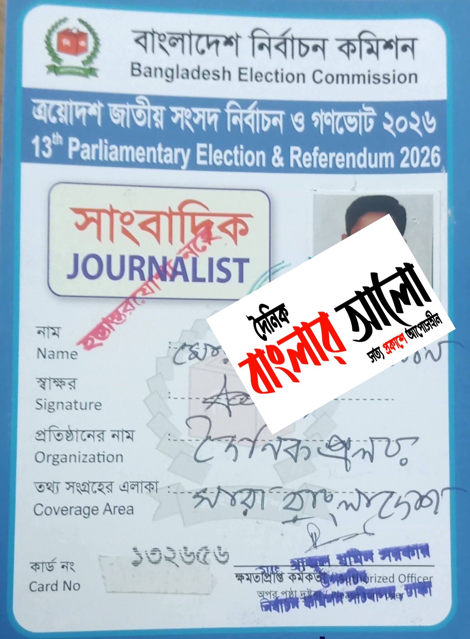 এই কার্ড কেবলমাত্র সংরক্ষিত নির্বাচনী এলাকায় পেশাগত দায়িত্ব পালনের জন্য প্রদত্ত একটি প্রশাসনিক অনুমতিপত্র। এর বেশি কিছু নয়। এটিকে বাড়িয়ে দেখানো যেমন অপ্রয়োজনীয়, তেমনি সাংবাদিকতার মর্যাদার পরিপন্থীও বটে।