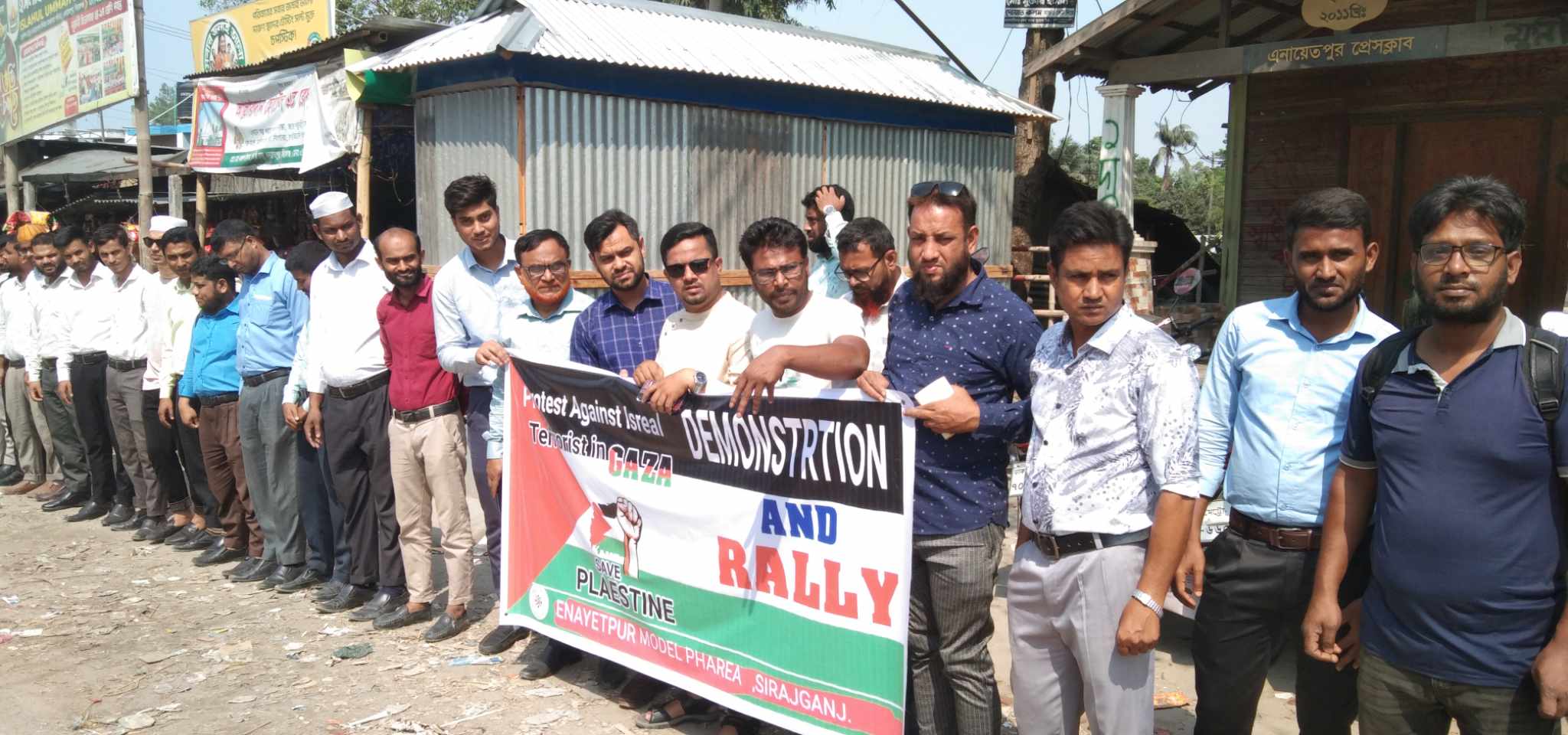 এনায়েতপুর কেজির মোড়, বাংলাদেশ ফারিয়া এসোসিয়েশন কর্তৃক এনায়েতপুর "থানা মডেল ফারিয়ার" উদ্যোগে টেরোরিস্ট, ঘাতক ইসরায়েল কর্তৃক নিরিহ ফিলিস্তিনি ভূখণ্ডে হামলা চালিয়ে পূরো ফিলিস্তিন কে ধ্বংশ করে, ফিলিস্তিনি নর নারী ও শিশু দের নির্বিচারে হত্যার প্রতিবাদে এক বিশাল মানববন্ধন করা হয়। প্রতিবাদ মানববন্ধন এ উপস্থিত ছিলেন, সিরাজগঞ্জ জেলা ফারিয়া সভাপতি মোঃ ইলিয়াস হোসাইন তিনি বলেন,, আজকে সারা বাংলাদেশর ফারিয়া কর্তৃক ইসরাইলে এর এই বর্বর হামলা ও মুসলিম দের হত্যার জন্য আমরা মানববন্ধন ও বিক্ষোভ সমাবেশ করছি, তিনি আরও বলেন আগামী তে আমরা আরো বরো কর্মসূচি দেব। উপস্থিত ছিলেন এনায়েতপুর থানা মডেল ফারিয়ার সভাপতি মোঃ আব্দুল করিম, তিনি বলেন, অন্যায়ের বিরুদ্ধে প্রতিবাদ করো,পারলে প্রতিরোধ গড়ে তোলো না পারলে মনে প্রাণে তাহাদের ঘৃনা করো, তিনি আরও বলেন, ফিলিস্তিনি গাজাকে ধ্বংস করতে শুধু ইসরায়েল ই দায়ী না, তাহাকে যাহারা সাহায্য করছে তাদের সবাইকে আমরা মনে প্রাণে ঘৃণা করি। মানববন্ধনে আরও উপস্থিত ছিলেন, মোঃ মুক্তার হাসান রাতুল, সাধারণ সম্পাদক এনায়েতপুর থানা মডেল ফারিয়া, উপস্থিত ছিলেন মোঃ শোয়েব মীর, প্রধান উপদেষ্টা এনায়েতপুর থানা মডেল ফারিয়া, উপস্থিত ছিলেন মোঃ জহুরুল ইসলাম উপদেষ্টা, মোঃ হেলাল উদ্দিন, উপদেষ্টা, মোঃ আতাউর রহমান উপদেষ্টা, মোঃ হাসমত আলী,রেমেক্স ল্যাবরেটরিস মোঃআদিবুল ইসলাম ইবনে সিনা ফার্মা, মোঃ নওশাদ আলী,পোপোলার ফার্মা, মোঃ রাসেল আহমেদ জিসকা ফার্মা, মোঃ তৌহিদুল ইসলাম, মোঃ ফরহাদ হোসেন,রেডিয়েন্ট ফার্মা, মোঃ হাসান ঈমাম রেডিয়েন্ট ফার্মা শরিফ ইসলাম, হেল্থ কেয়ার, মোঃ আব্দুল মালেক,বীকন ফার্মা, মোঃ সবুজ হোসেন,ইউনিমেড ইউনিহেল্থ, মোঃ নুরুল ইসলাম ফয়সাল,পোপোলার, মোঃ সুমন আহমেদ কেমিস্ট ফার্মা, মোঃ আব্দুল্লাহ আল মামুন, গ্লোব ফার্মা মোঃ আশিক ইমপিরিক ল্যাব, মোঃ মিলন হোসেন, ইবনে সিনা ফার্মা, মোঃ মনিরুজ্জামান মনি এসিআই ফার্মা, মোঃ বেলাল হোসেন কনকর্ড ফার্মা, মোঃ হোসাননুজ্জামান, ড্রাগ ফার্মা, মোঃ শাহিন এসকে এফ ফার্মা, মোঃ রুহুল আমিন ড্রাগ ফার্মা মোঃ মাসুদ মোঃ রেজাউল মোঃ সালেক মোঃ মোস্তাক আহমেদ মোঃ আখলাকুজ্জামান মোঃ সাজ্জাদ হোসেন সহ অনেকেই উপস্থিত ছিলেন।