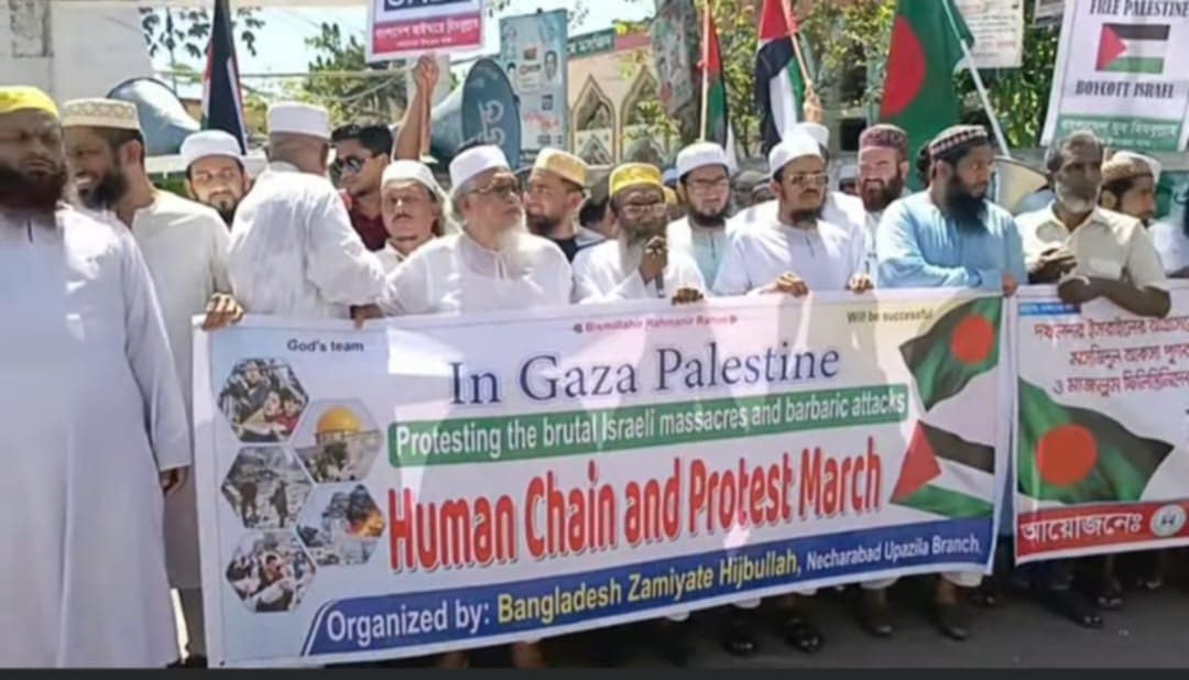 এসময় উপস্থিত বক্তারা ফিলিস্তিনের গাজায় বর্বর ইসরায়েলী গনহত্যার তীব্র নিন্দা ও প্রতিবাদ জানান এবং বাংলাদেশে ইসরায়েল কে সহায়তা করে এমন কোম্পানির পন্য বয়কটের তীব্র দাবি জানান। মুসলিম উম্মাহর হৃদয়ের স্পন্দন আল আকসা মসজিদ আজ ভয়াবহ আগ্রাসনের শিকার। ইসলামের প্রথম কিবলা, ঐতিহাসিক ও ধর্মীয় গুরুত্বপূর্ণ এই স্থানকে ঘিরে ইসরায়েলি বাহিনীর বর্বরতা মানবতাবিরোধী অপরাধ। অবিলম্বে তারা এই গণহত্যা বন্ধে আন্তর্জাতিক সম্প্রদায়ের কঠোর হস্তক্ষেপের দাবি জানান।