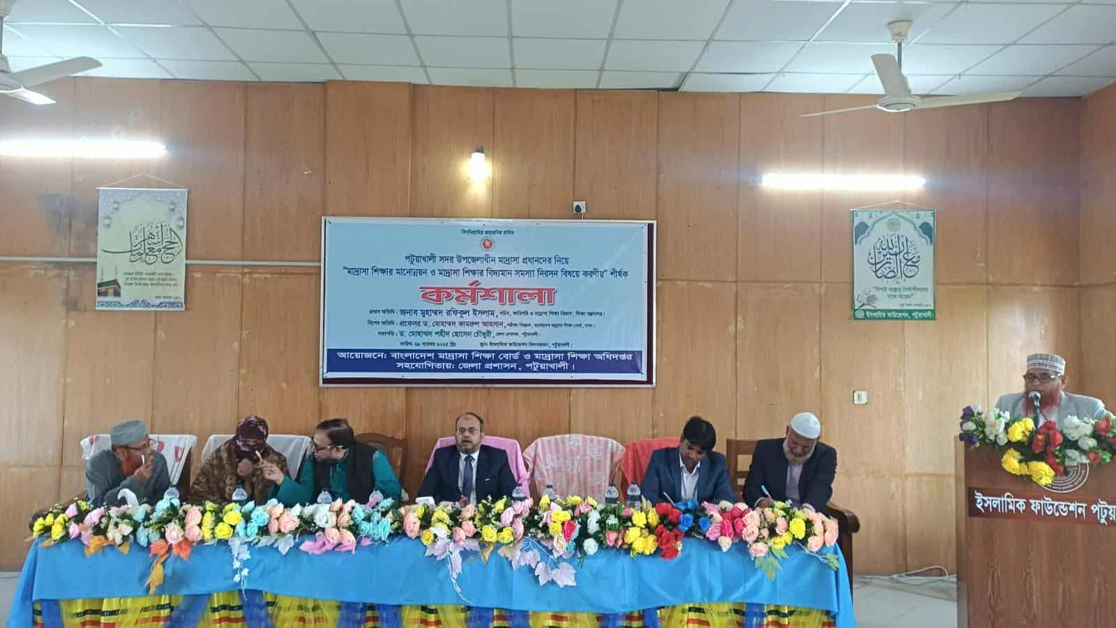 পটুয়াখালিতে ২৯/১১/২০২৫ ইং মাদরাসা শিক্ষার মানোন্নয়ন ও শিক্ষার বিদ্যমান সমস্যা নিরসন করনীয় " শীর্ষক কর্মশালা" শিক্ষা প্রতিষ্ঠানের প্রধানদের কে নিয়ে ইসলামি ব্যাংকের কনফারেঞ্চ রুমে অনুষ্ঠিত হয়