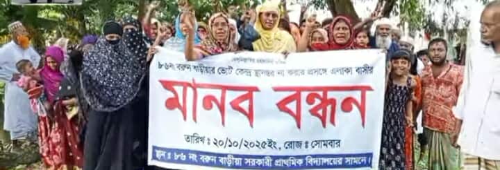 মরিচবুনিয়া ইউনিয়নের বরুন বাড়িয়া সরকারী প্রাঃ বিদ্যালয়ের ভোটকেন্দ্র স্থানান্তরের সিদ্ধান্তের প্রতিবাদে