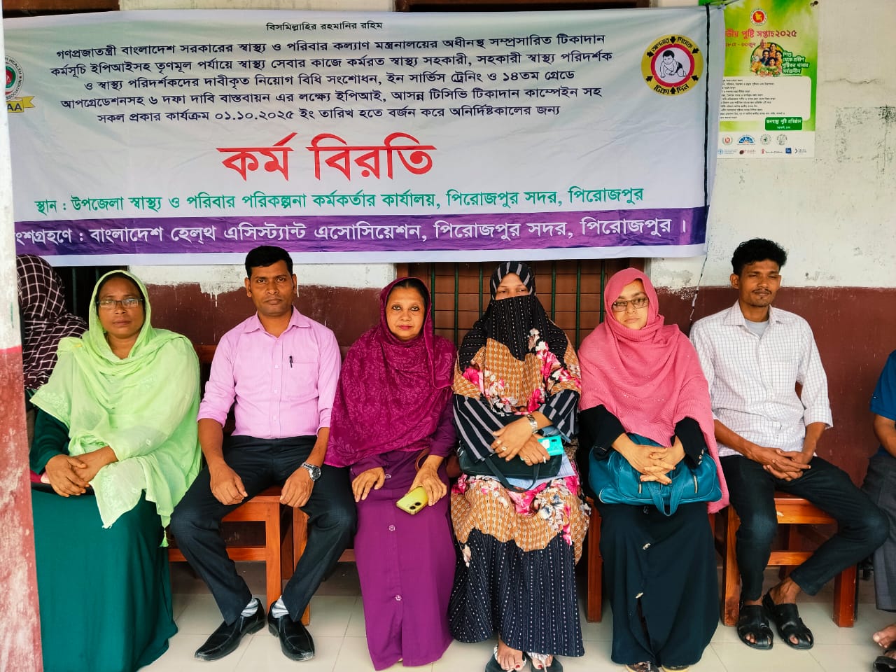 বাংলাদেশ সরকারের স্বাস্থ্য ও পরিবার কল্যাণ মন্ত্রণালয় অধীনস্থ সম্প্রসারিত টিকাদান কর্মসূচি ইপিআইসহ তৃণমূল পর্যায়ে স্বাস্থ্যসেবার কাজে কর্মরত স্বাস্থ্য সহকারী, সহকারী স্বাস্থ্য পরিদর্শক ও স্বাস্থ্য পরিদর্শকদের দাবিকৃত নিয়োগ বিধি সংশোধন, ইন সার্ভিস ট্রেনিং ও ১৪ তম গ্রেডে আপগ্রেডেশনসহ ছয় দফা দাবি বাস্তবায়নের লক্ষ্যে ইপিআই,আসন্ন টিসিভি টিকাদান ক্যাম্পেইন সহ সকল প্রকার কার্যক্রম ০১/১০/২৫ ইংরেজি তারিখ হতে বর্জন করে অনির্দিষ্টকালের জন্য কর্মবিরতি পালন করা হয়।