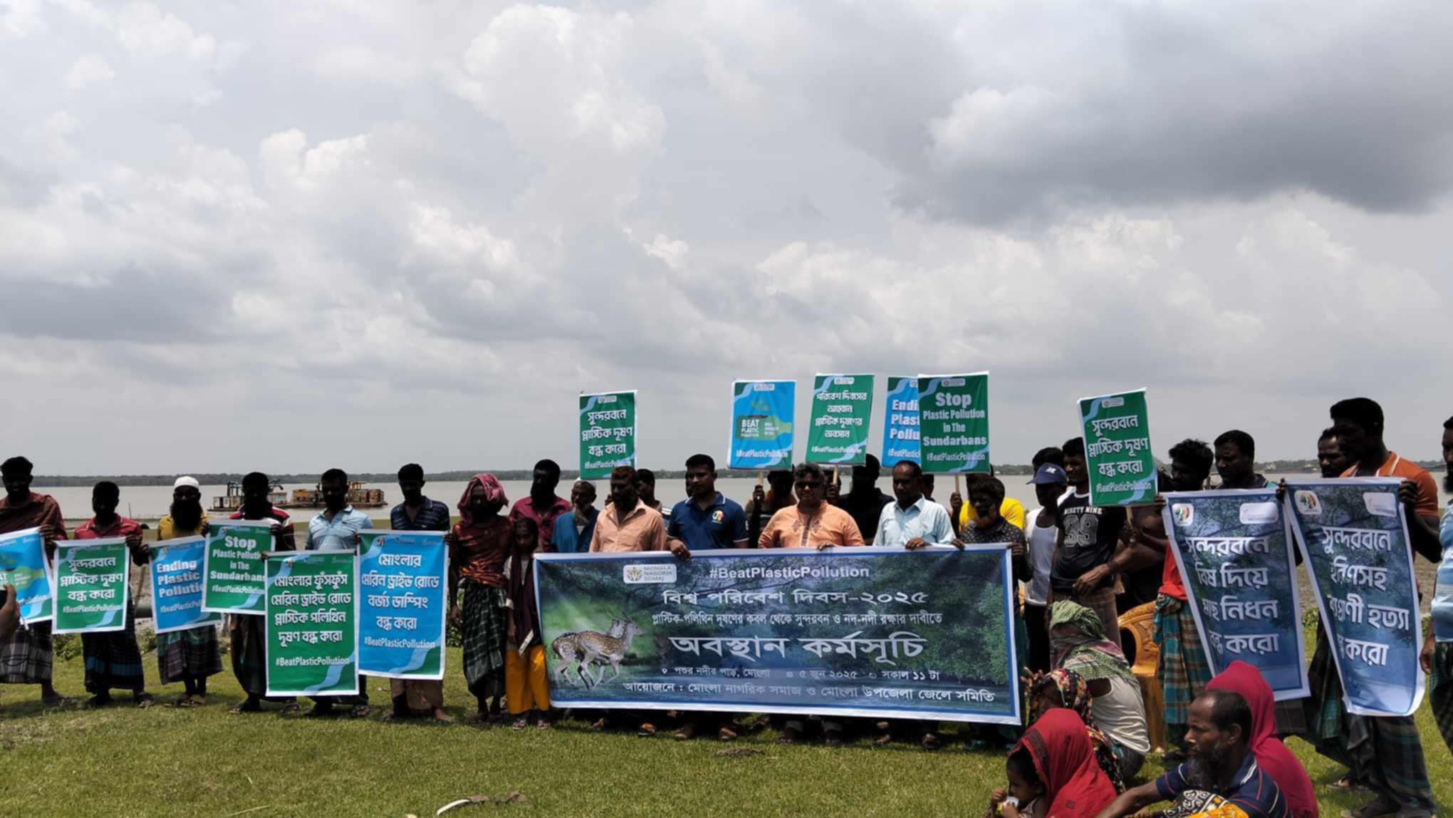 প্লাাস্টিক পলিথিন দূষণে আক্রান্ত সুন্দরবন। প্লাস্টিক পলিথিন দূষণের ফলে সুন্দরবনের বাস্তুতন্ত্র হুমকিতে। গবেষণায় সুন্দরবনের মাছে মাইক্রো প্লাস্টিকের অস্তিত্ব পাওয়া গেছে। এতে জনস্বাস্থ্য ঝুঁকির মধ্যে পড়েছে। সুন্দরবনের জলজপ্রাণী ও বাস্তুতন্ত্র রক্ষায় প্লাস্টিক পলিথিন বিষয়ে জিরো টলারেন্স নীতিতে চলতে হবে। শুধুমাত্র সুন্দরবনে সিঙ্গেল ইউজ প্লাস্টিক নিষিদ্ধ করলে হবেনা, সমগ্র উপকূলজুড়ে এবং পর্যায়ক্রমে সারাদেশে সিঙ্গেল ইউজ প্লাস্টিক নিষিদ্ধ করতে হবে। আর নয়, প্লাস্টিক পলিথিন দূষণ বন্ধ করার এখনই সময়। বৃহস্পতিবার (৫ জুন) সকাল ১১টায় মোংলার কানাইনগর পশুর নদীর পাড়ে বিশ্ব পরিবেশ দিবস উপলক্ষে প্লাস্টিক পলিথিন দূষণের কবল থেকে সুন্দরবন ও নদ-নদী রক্ষার দাবিতে অবস্থান কর্মসূচিতে বক্তারা একথা বলেন। মোংলা নাগরিক সমাজ ও মোংলা উপজেলা জেলে সমিতির যৌথ আয়োজনে এ অবস্থান কর্মসূচির আয়োজন করা হয়। ”বিশ্ব পরিবেশ দিবসের আহ্বান, হোক প্লাস্টিক দূষণের অবসান” শ্লোগানে এবছর বিশ্ব পরিবেশ দিবস পালিত হচ্ছে। উপজেলা জেলে সমিতির সভাপতি বিদ্যুৎ মন্ডল'র সভাপতিত্বে অবস্থান কর্মসূচিতে প্রধান অতিথির বক্তৃতা করেন মোংলা নাগরিক সমাজের সভাপতি বিশিষ্ট সাংবাদিক পরিবেশযোদ্ধা মোঃ নূর আলম শেখ। অন্যান্যদের বক্তৃতা করেন সার্ভিস বাংলাদেশ'র সভাপতি মোস্তাফিজুর রহমান মিলন, মোংলা নাগরিক সমাজের জানে আলম বাবু, সুমন রানা, জেলে সমিতির সাধারণ সম্পাদক আব্দুর রশিদ হাওলাদার, শাহাদত ব্যাপারী, মোঃ জাহিদ হোসেন প্রমূখ। প্রধান অতিথির বক্তৃতায় মোংলা নাগরিক সমাজের সভাপতি পরিবেশযোদ্ধা মোঃ নূর আলম শেখ বলেন, শুধুমাত্র আইন ও বিধিবিধান করে সুন্দরবনকে প্লাস্টিক পলিথিন দূষণমুক্ত করা যাবেনা। মানুষের জনসচেতনতা ও আইন এবং বিধিবিধানের কঠোর অনুসরণ সুন্দরবনকে দূষণমুক্ত করা সম্ভব। সুন্দরবনের সর্বত্র প্লাস্টিক পলিথিন ছড়িয়ে ছিটিয়ে থাকতে দেখা যায়। বনবিভাগসহ আইনশৃংখলা বাহিনীকে এবিষয়ে কঠোর পদক্ষেপ নিতে হবে।