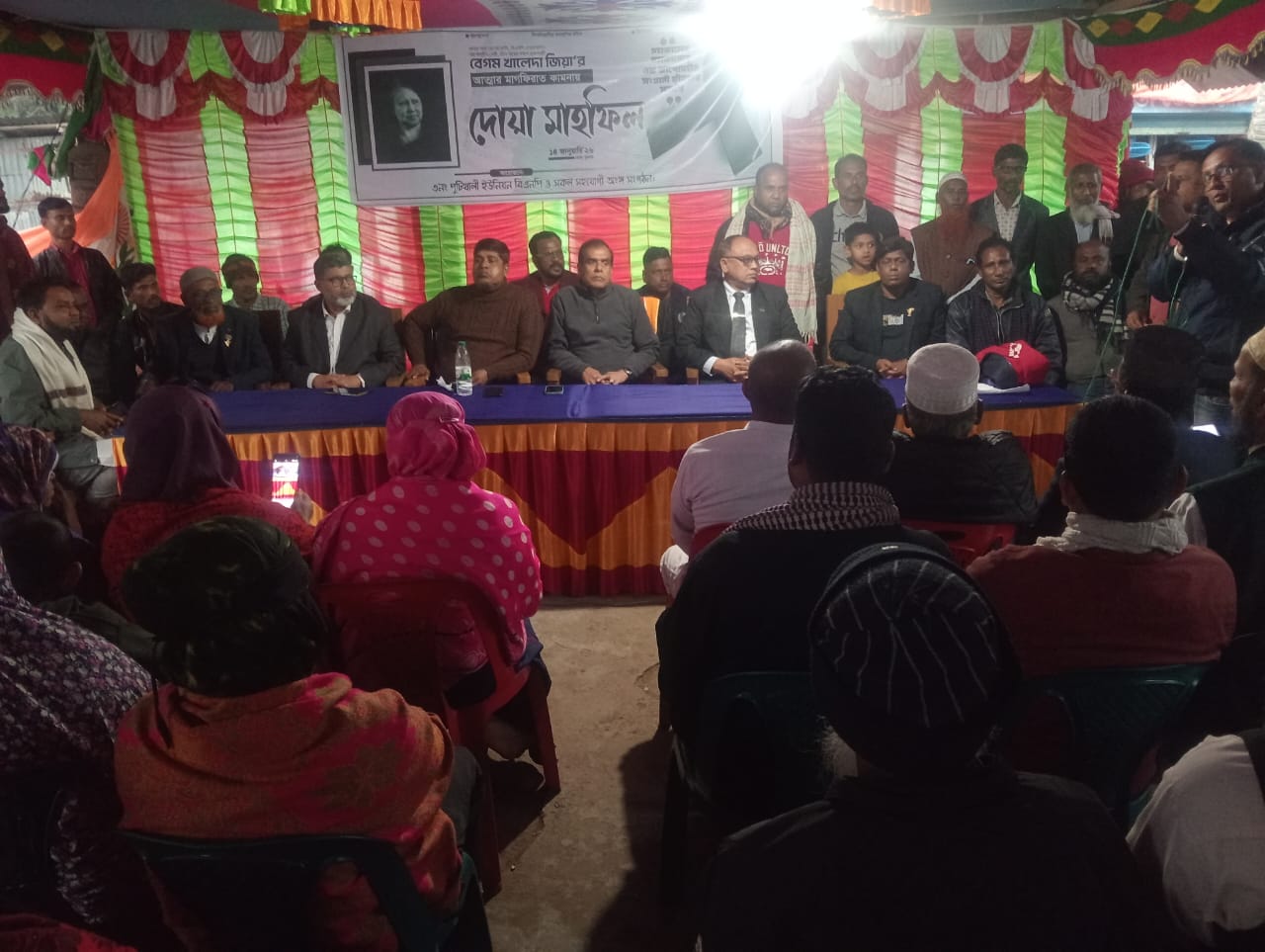 দোয়া পরিচালনা শেষে বেগম খালেদা জিয়ার রুহের মাগফিরাত ও দেশের শান্তি কামনা করে বিশেষ মোনাজাত করা হয়। পরে উপস্থিত সকলের মাঝে তাবারক বিতরণ করা হয়। এ সময় বিভিন্ন পর্যায়ের বিএনপি ও অঙ্গসংগঠনের নেতাকর্মীরা উপস্থিত ছিলেন।