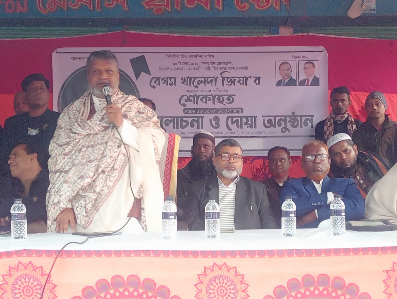 জাতীয় রাজনীতির বরিষ্ঠ নেত্রী বেগম খালেদা জিয়ার মৃত্যুতে মোড়েলগঞ্জের আমতলা বাজারে দোয়া ও আলোচনা সভা অনুষ্ঠিত হয়েছে।