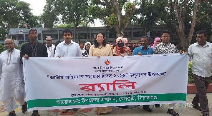 "সরকারি খরচে বিরোধ শেষ সবার আগে বাংলাদেশ " এই প্রতিপাদ্যকে সামনে রেখে সিরাজগঞ্জের বেলকুচিতে জাতীয় আইনগত সহায়তা দিবস উপলক্ষে র্যালি ও আলোচনা সভা অনুষ্ঠিত হয়।