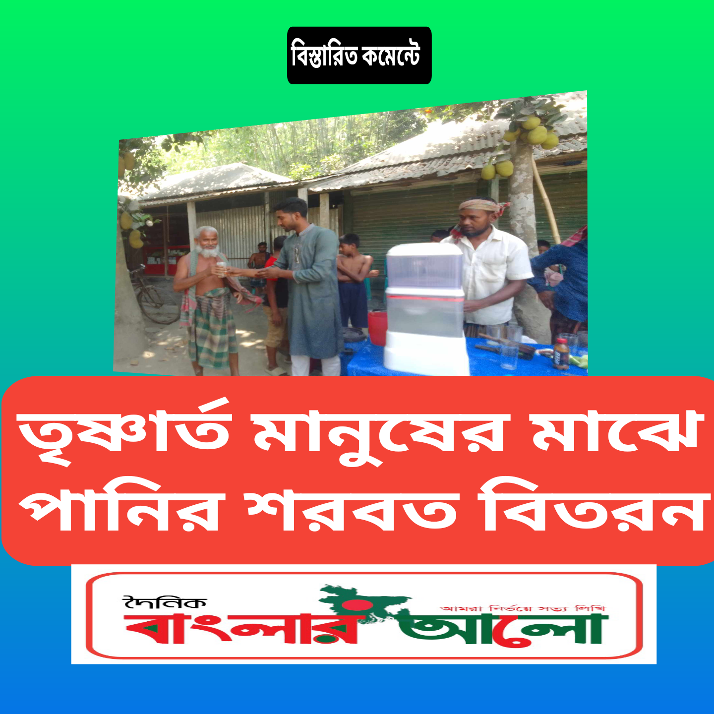 যুবক দের উদ্যোগে তৃষ্ণার্ত মানুষের মাঝে পানির শরবত বিতারণ করেন।