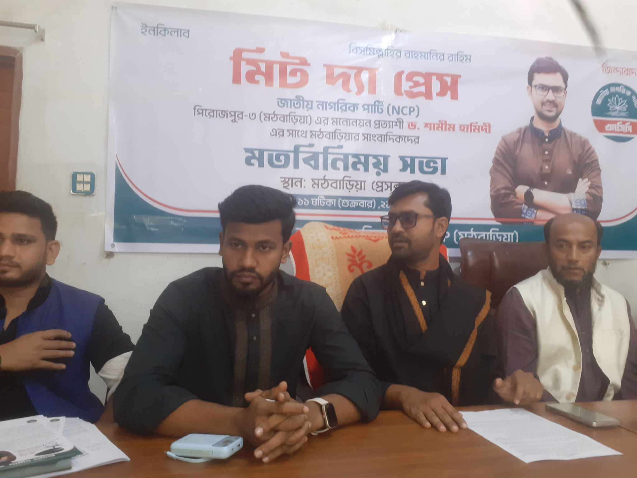 ত্রয়োদশ জাতীয় সংসদ নির্বাচন,২০২৬ এর সদ্য রেজিষ্ট্রেশনপ্রাপ্ত জাতীয় নাগরিক পার্টী (এনসিপি) হতে পিরোজপুর-৩ আসনে মনোনয়ন প্রত্যাশী মাগাদী আজ ২১ নভেম্বর,২০২৫ সকাল ১১.০০টায় মঠবাড়ীয়া প্রেসক্লাবে সাংবাদিক সম্মেলন করেন।উক্ত সম্মেলনে সভাপতিত্ব করেন মঠবাড়ীয়া প্রেস ক্লাবের ভারপ্রাপ্ত সভাপতি জামান আবির । সকল সাংবাদিক সংস্হার অধিকাংশ সাংবাদিকগণ উপস্হিত ছিলেন। এনসিপি হতে মনোনয়ন প্রত্যাশী আজকের সম্মেলনের প্রধান অতিথি তার পরিচয় প্রধান করে বলেন,তার নাম ড. শানীম হামদী। তিনি ঢাকা একটি বিশ্ববিদ্যালয়ে চাকুরী করেন। তার গ্রামের বাড়ী ধানীসাফা ইউনিয়নে। জুলাই,২০২৪ এর পূর্বে তেমন কোন রাজনৈতিক দলের সম্পৃক্ততা ছিল না। ফ্যাসিষ্ট আওয়ামী সরকারের ১৭ বছরে শাসন আমলের গুম,খুন,অর্থ পাচারসহ বিভিন্ন অপকর্মের কারনে জুলাই,২৪ ছাত্র জনতার আন্দেলনে অংশ গ্রহণ করেন এবং নূতন প্রতিষ্ঠিত দল এনসিপি,র সাথে সম্পৃক্ত হয়। তার শৈশব ও কৈশোরে বেড়ে উঠা মঠবাড়ীয়ার উন্নয়ন,মাদকমুক্ত সমাজ গঠন,শিক্ষা, স্বাস্হ্য,কৃষির উন্নয়মের জন্য কাজ করার ইচ্ছা নিয়ে তিনি ত্রয়োদশ জাতী সংসদ নির্বাচনে এনসিপি হতে সাপলা কলি প্রতীকের মনোয়ন প্রত্যাশী। তিনি সকলের সহযোগিতা কামনা করেন। তার বক্তব্যে শেষে সাংবাদিকদের বিভিন্ন প্রশ্নের জবাব প্রদান করেন।