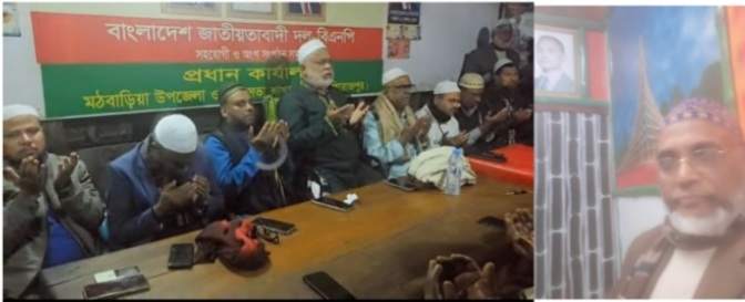 মাদার অব ডেমোক্রেসি,৩ বারের সফল প্রধানমন্ত্রী,আপোষহীন নেত্রী বেগম খালেদা জিয়া দীর্ঘদিন অসুস্হ্য থাকায় বর্তমানে তিনি গুরুতর অসুস্হ্য হওয়ায় তার রোগমুক্তির কামনায় মঠবাড়ীয়া উপজেলা বিএনপি ও তার অংগ সংগঠনের নেতা কর্মীদের উপস্হিতিতে আজ শনিবার মাগরিববাদ বিএনপি কার্যালয়ে দোয়া অনুষ্ঠানের আয়োজন করা হয়। উক্ত দোয়া অনুষ্ঠানে উপস্হিত ছিলেন মঠবাড়ীয়া মাটি ও মানুষের নেতা, কর্মীবান্ধব,গরীব দু:খি মেহনতি মানুষের নেতা,সাবেক উপজেলা বিএনপি'র আহবায়ক, আসন্ন ত্রয়োদশ জাতীয় সংসদ নির্বাচনে ধানের শীষের কান্ডারী আলহাজ্ব রুহুল আমিন দুলাল। আরও উপস্হিত ছিলেন,জননন্দিত নেতা,একসময়ের তুখোড় ছাত্র নেতা,সাবেক পৌর বিএনপি'র আহবায়ক কে,এম,হুমায়ুন কবির, উপজেলা বিএনপি'র ভারপ্রাপ্ত আহবায়ক মো: শামীম মিয়া মৃধা, সাবেক উপজেলা বিএনপি'র আহবায়ক এ্যাডভোকেট রফিকুল ইসলাম বাবুল, উপজেলা বিএনপি'র সদস্য সচিব আবু বকর সিদ্দিক বাদল, উপজেলা বিএনপি'র যুগ্ম আহবায়ক সালাহ উদ্দিন ফারুক, পৌর বিএনপি সভাপতি মো: জসিম উদ্দিন ফরাজী, পৌর বিএনপি সাধারণ সম্পাদক মিজানুর রহমান মিজান প্রমূখ। পৌরসভা মসজিদের ইমাম কর্তৃক দোয়া ও মোনাজাত পরিনেশন করেন।