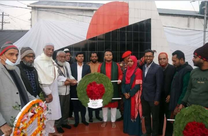 পিরোজপুরের মঠবাড়ীয়ায় আজ ১৬ ডিসেম্বর,২০২৫ যথাযোগ্য মর্যাদায় ৫৫ তম মহান বিজয় দিবস সরকারী ও দলীয় ভাবে উদযাপিত হয়েছে। সূর্যোদয়ের সাথে সাথে ৩১ বার তোপধ্বনীর মাধ্যমে দিবসের শুভ সূচনা হয় এবং শহীদ মিনার প্রাঙ্গনে উপজেলা প্রশাসন,পুলিশ প্রশাসন,রাজনৈতিক দল,সাংবাদিক সংস্হা সমূহ, মানবাধিকার সংগঠন,শিক্ষা প্রতিষ্ঠান সমূহ ও এনজিও প্রতিনিধিগণ শহীদ মিনারে পুস্পস্তাবক অর্পণ করেন। উপজেলা প্রশাসনের পক্ষে উপজেলা নির্বাহী অফিসার(ভারপ্রাপ্ত)ও সহকারী কমিশনার(ভূমি) রাইছুল ইসলামের নেতৃত্বে বিভিন্ন দপ্তরের কর্মকর্তাদের নিয়ে পুস্পস্তাবক অর্পণ করেন। পুলিশ প্রশাসনের পক্ষে অফিসার ইন চার্জ সুজন বিশ্বাস,ওসি(তদন্ত)সহ পুলিশ কর্মকর্তাদের নিয়ে পুস্পস্তাবক অর্পন করেন। মঠবাড়ীয়া জাতীয়তাবাদী দল বিএনপি এর সাবেক আহবায়ক ও আসন্ন জাতীয় সংসদ নির্বাচনের বিএনপি মনোনীত প্রার্থী আলহাজ্ব রুহুল আমিন দুলাল এর নেতৃত্বে নেতাকর্মী নিয়ে এবং পৌর বিএনপি সভাপতি জসিম উদ্দিন ফরাজী ও সাধারণ সম্পাদক মিজানুর রহমান মিজানের নেতৃত্বে পুস্পস্তাবক অর্পন করেন। আন্তর্জাতিক মানবাধিকার বাস্তবায়ন প্রশিক্ষণ হিট ফাউন্ডেশন, মঠবাড়ীয়া শাখার সভাপতি মো: শামীম মিয়া মৃধা ও হিট ফাউন্ডেশন কেন্দ্রীয় কার্যালয়ের পরিচালক(তদন্ত প্রধান) ও সভাপতি,ঢাকা বিভাগ মুশফিকুর রহিম রনি এর নেতৃত্বে মানবাধিকার কর্মীদের নিয়ে পুস্পস্তাবক অর্পণ করেন। বাংলাদেশ প্রেসক্লাব,মঠবাড়ীয়া শাখার সভাপতি নাজমুল আহসান কবির ও সাধারণ সম্পাদক মো: আইউব আলী হাওলাদার,সিনি: সহসভাপতি মোস্তাফিজুর রহমান ফিরোজ এর নেতৃত্বে এবং অন্যান্য প্রতঠানের প্রধানগণ পুস্পস্তাবক অর্পণ করেন। সকাল ৯টায় শহীদ মোস্তফা খেলার মাঠে আনুষ্ঠানিকভাবে জাতীয় পতাকা উত্তোলন করেন উপজেলা মির্বাহী অফিসার(ভারপ্রাপ্ত) রাইছুল ইসলাম। বেলা ১১টায় মুক্তিযোদ্ধা কমপ্লেক্মের সামনে আলোচনা সভা ও মুক্তিযোদ্ধা এবং শহীদ মুক্তিযোদ্ধা সন্তানদের সম্বর্ধনা দেয়া হয়। বিকালে উপজেলা পরিষদ চত্বরে ৩দিন ব্যাপী উন্নয়ন মেলার উদ্বোধন করা হয় এবং সাস্কৃতিক অনুষ্ঠানের আয়োজন করা হয়।