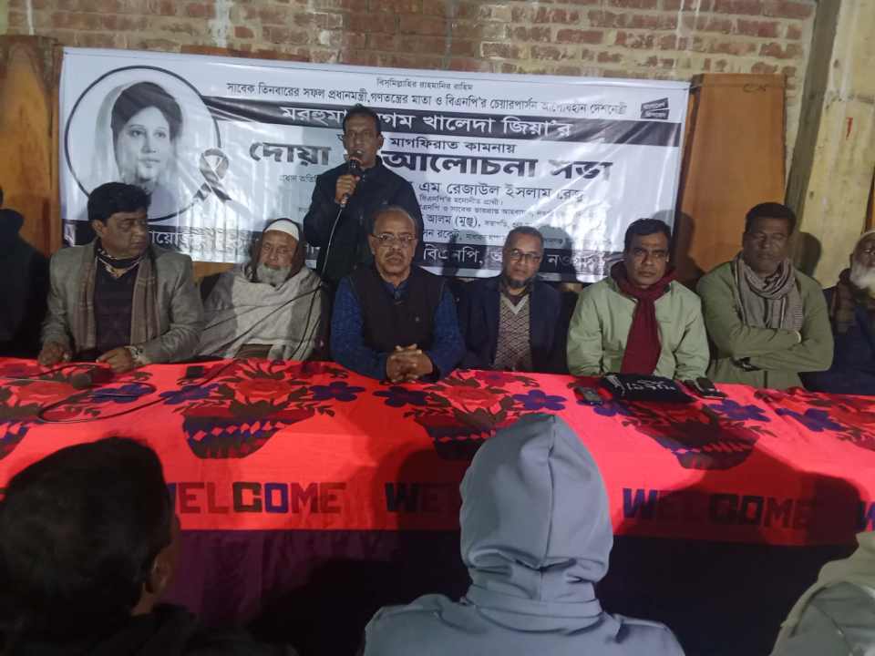 নওগাঁর আত্রাইয়ে তিনবারের সাবেক প্রধানমন্ত্রী বিএনপির চেয়ারপার্সন ও আপসহীন দেশনেত্রী মরহুমা বেগম খালেদা জিয়ার আত্মার মাগফিরাত কামনায় দোয়া ও আলোচনা সভা অনুষ্ঠিত হয়েছে।