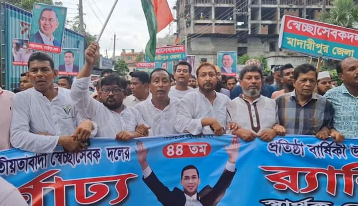 মাদারীপুরে বর্ণাঢ্য র্যালি ও আলোচনা সভার মধ্যে দিয়ে জাতীয়তাবাদী স্বেচ্ছাসেবক দলের ৪৪তম প্রতিষ্ঠাবার্ষিকী পালন করা হয়েছে। একই সময় দলের দুটি গ্রুপের পক্ষ থেকে আলাদা আলাদা অনুষ্ঠান করা হয়। সোমবার বিকেলে মাদারীপুর লিগাল এইড অফিসের সামনে থেকে একটি বিশাল শোভাযাত্রা বের হয়ে শহরের প্রধান প্রধান সড়ক প্রদক্ষিণ করে পৌরসভা কমিউনিটি সেন্টারে এসে শেষ হয়। পরে সেখানে এক আলোচনা সভা অনুষ্ঠিত হয়। এছাড়া পৌর ঈদগাহ ময়দানে আলাদাভাবে অনুষ্ঠান করে দলের আরেকটি অংশের নেতাকর্মীরা। এ সময় তারা বিএনপির চেয়ারপার্সণ বেগম খালেদা জিয়া ও দলটির জ্যেষ্ঠ ভাইস চেয়ারম্যান তারেক রহমানের নির্দেশে দেশ এগিয়ে নিয়ে যাবার কথা জানান।
