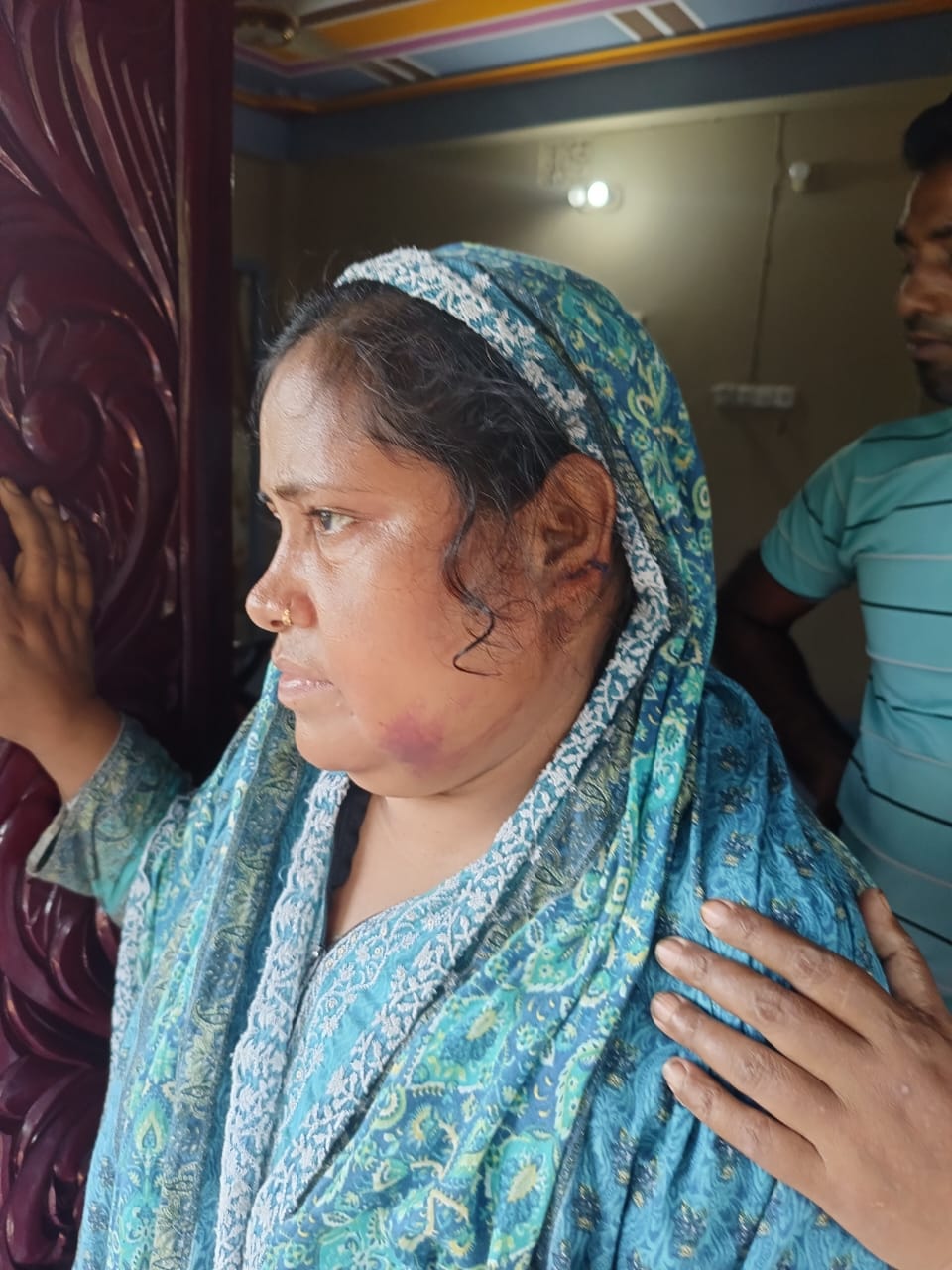 তিনি জানান, “আমি শব্দ পেয়ে রুমের দরজা খুলে বের হলে তারা আমাকে ধরে ফেলে। আমি চিৎকার করলে এক ডাকাত রেঞ্চ দিয়ে আমার মাথায় আঘাত করে। আমি মাটিতে পড়ে গেলে তারা ঘরে থাকা শাশুড়ি, বড় বোন ও পুত্রবধূকে এক কক্ষে আটকে রেখে স্বর্ণালঙ্কার, নগদ টাকা ও কাপড়চোপড় লুট করে নিয়ে যায়।”