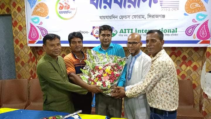 যায়যায়দিন ফ্রেন্ডস ফোরামের সভাপতি ইঞ্জিনিয়ার আবু তালহার সভাপতিত্বে ও এটিএন বাংলা, এটিএন নিউজের সিরাজগঞ্জ প্রতিনিধি ফেরদৌস হাসান এর সঞ্চালনায় অনুষ্ঠানে স্বাগত বক্তব্য রাখেন দৈনিক যায়যায়দিন এর সিরাজগঞ্জ প্রতিনিধি এইচএম মোকাদ্দেস, শুভেচ্ছা বক্তব্য রাখেন, যায়যায়দিন ফ্রেন্ডস ফোরামের সাধারণ সম্পাদক ডাঃ পারভেজ রায়হান, সলঙ্গা প্রেসক্লাবের সাধারণ সম্পাদক এম দুলাল উদ্দিন আহমেদ, হাটিকুমরুল প্রেসক্লাবের সাধারণ সম্পাদক জাকির হোসাইন প্রমুখ। এসময় আরও উপস্থিত ছিলেন, সিরাজগঞ্জ প্রেসক্লাবের আহবায়ক কমিটির সদস্য দৈনিক জনকণ্ঠের ষ্টাফরিপোর্টার মোঃ নূরুল ইসলাম বাবু, প্রেসক্লাবের সাবেক সভাপতি ও বাংলা ভিশনের জেলা প্রতিনিধি হারুন অর রশিদ খান হাসান, প্রেসক্লাবের সাবেক সহ সভাপতি ও আলোকিত বাংলাদেশ এর জেলা প্রতিনিধি এস,এম তফিজ উদ্দিন,