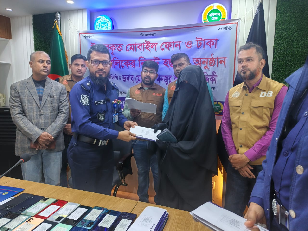 পিরোজপুর জেলা পুলিশের সাইবার পেট্রোলিং ইউনিটের তৎপরতায় উদ্ধার করা হয়েছে ২২টি হারানো স্মার্টফোন ও বিকাশ প্রতারণার মাধ্যমে খোয়া যাওয়া ১৮ হাজার টাকা। সোমবার (১২ জানুয়ারি) সকাল ১১টা ৩০ মিনিটে পিরোজপুর জেলা পুলিশ সুপারের কার্যালয় মিলনায়তনে এক অনুষ্ঠানের মাধ্যমে এসব মালামাল প্রকৃত মালিকদের হাতে তুলে দেওয়া হয়।