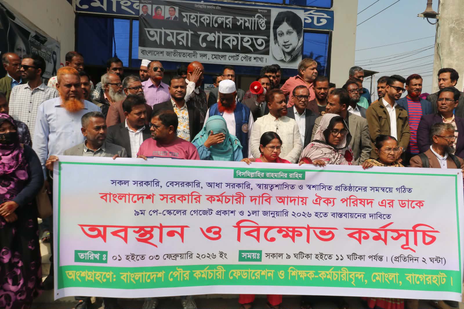 সকল সরকারি, বেসরকারি, আধা সরকারি, স্বায়ত্বশাসিত ও স্বশাসিত প্রতিষ্ঠানের কর্মকর্তা-কর্মচারীদের সমন্বয়ে গঠিত এ সংগঠনের উদ্যোগে ১ থেকে ৩ ফেব্রুয়ারি ২০২৬ পর্যন্ত প্রতিদিন সকাল ৯টা থেকে ১১টা পর্যন্ত দুই ঘণ্টাব্যাপী এ কর্মসূচি অনুষ্ঠিত হয়। এতে মোংলা উপজেলার বিভিন্ন দপ্তরের শিক্ষক ও কর্মচারীরা অংশগ্রহণ করেন।