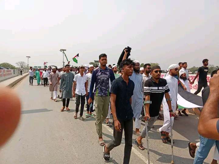 নওগাঁর আত্রাইয়ে সর্বস্তরের তৌহিদী জনতার আয়োজনে গতকাল সোমবার (৭ এপ্রিল) দখলদার ইসরায়েলের গণহত্যা আগ্রাসনের বিরুদ্ধে এক শান্তিপূর্ণ বিক্ষোভ মিছিল অনুষ্ঠিত হয়েছে। বিক্ষোভ মিছিল উপজেলার প্রধান প্রধান সড়ক প্রদক্ষিণ শেষে মোল্লা আজাদ মেমোরিয়াল সরকারি কলেজ গেটে সমাবেশ অনুষ্ঠিত হয়। মিছিল ও সমাবেশে বক্তব্য দেন নওগাঁ-০৬ (আত্রাই-রাণীনগর) আসনের বাংলাদেশ জামায়াতে ইসলামীর মনোনীত এমপি পদপ্রার্থী ও নওগাঁ জেলা জামায়াতে ইসলামীর কর্ম পরিষদের সদস্য ও পাঁচুপুর ইউনিয়ন পরিষদের চেয়ারম্যান মোঃ খবিরুল ইসলাম।তিনি ফিলিস্তিনের নির্যাতিত,গণহত্যা বন্ধ, যুদ্ধ বিরতি ও আন্তর্জাতিক সম্প্রদায়ের প্রতি জোরালো ভূমিকা রাখার দাবি জানান।এ সময় তিনি বলেন,”ফিলিস্তিনের মানুষের ওপর ইসরায়েলের অব্যাহত গণহত্যা,নিপীড়ন ও আগ্রাসন মানবতার বিরুদ্ধে বিশ্ববাসীকে এই অন্যায়ের বিরুদ্ধে রুখে দাঁড়াতে হবে। মিছিলে অংশগ্রহণকারীরা ইসরায়েলের বিরুদ্ধে বিভিন্ন স্লোগান দেন এবং ফিলিস্তিনের মানুষের প্রতি সংহতি প্রকাশ করেন। তারা ফিলিস্তিনের গণহত্যা বন্ধ সহ বিশ্বব্যাপী মুসলিম উম্মাহকে সংগঠিত হওয়ার এবং ফিলিস্তিনের মানুষের পাশে দাঁড়ানোর জন্য সবাইকে এগিয়ে আসার আহ্বান জানান।
